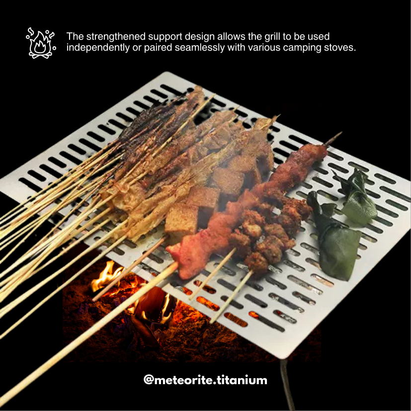 Use it as a stable camping table, a raised grill, or remove the legs and place it directly on stones to create a low-profile grilling rack over fire. Built from durable titanium, it offers excellent heat resistance, strength, and long-lasting performance—without unnecessary weight.