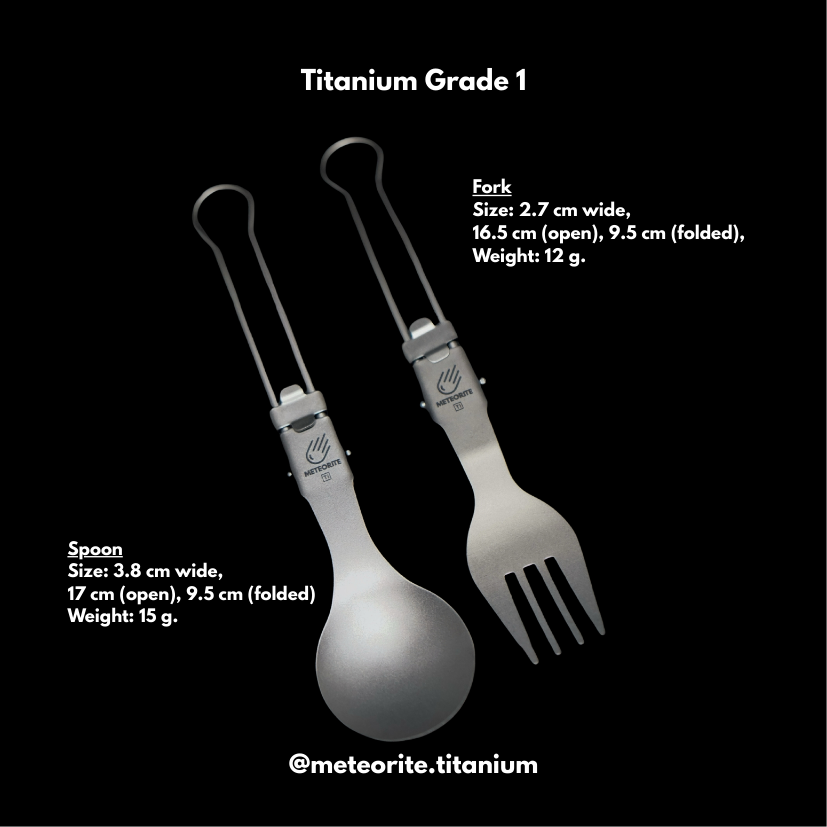 Ultra-light, durable, and naturally corrosion-resistant. These Grade-1 titanium spoon and fork are designed for travel, camping, and everyday carry. Compact when folded, strong when opened — built for a lifetime of use.